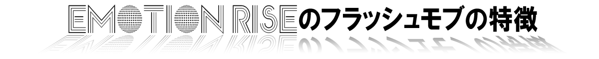 オリジナリティ溢れる演出でフラッシュモブを盛り上げます。当社が実施したフラッシュモブの 演出がスタンダートとなり多方面で見受けられますが、当社は他社の演出や振り付けをまねての 実施は行っておりません。演出力・構成力はどこにも負けません。自信を持ってご提案させていただきます。